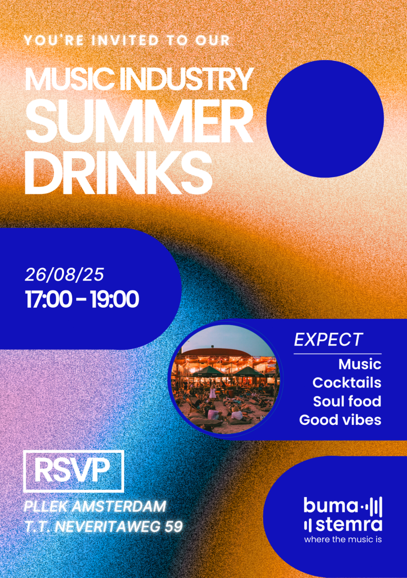 Tuesday August 26th PLLEK Amsterdam. Registrations for the Music Industry Summer drinks are now closed.
